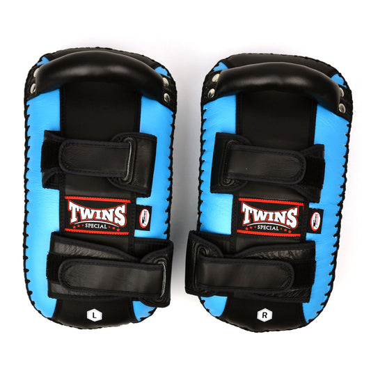 KPL10 Twins Curved Leather Thai Kick Pads Light Blue-Black